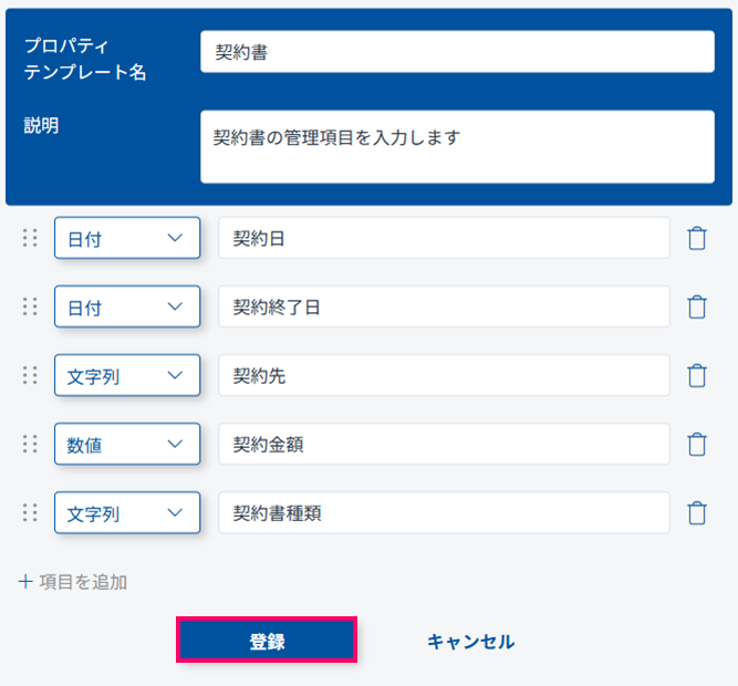 1. ユーザー定義プロパティのテンプレートを追加