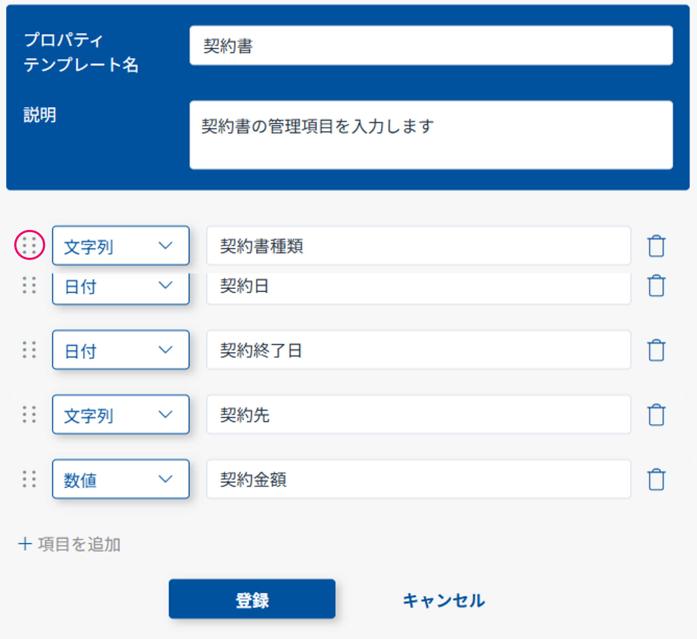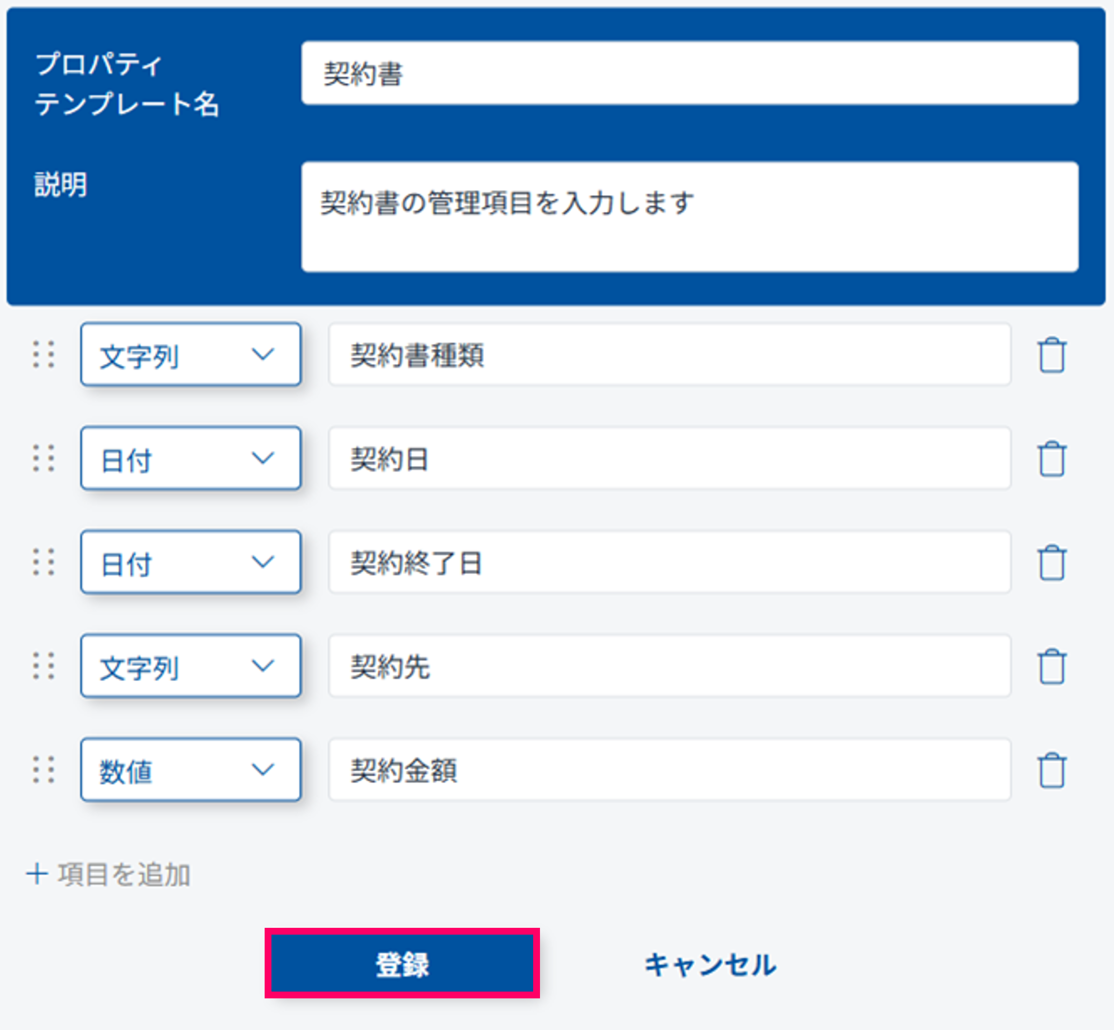 (4) [項目名]を入力して「登録」をクリックします。
