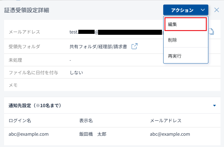 メールに添付されたファイル(証憑)を、eDOCにアップロードするための機能です。