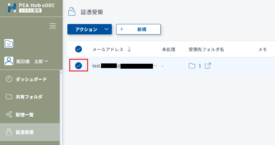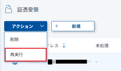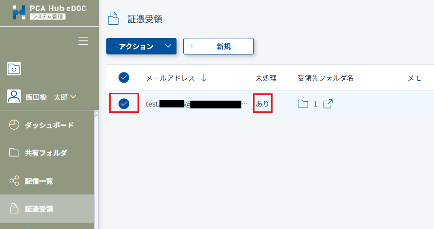 (1) 未処理「あり」と表示されているメールアドレスをチェックします。