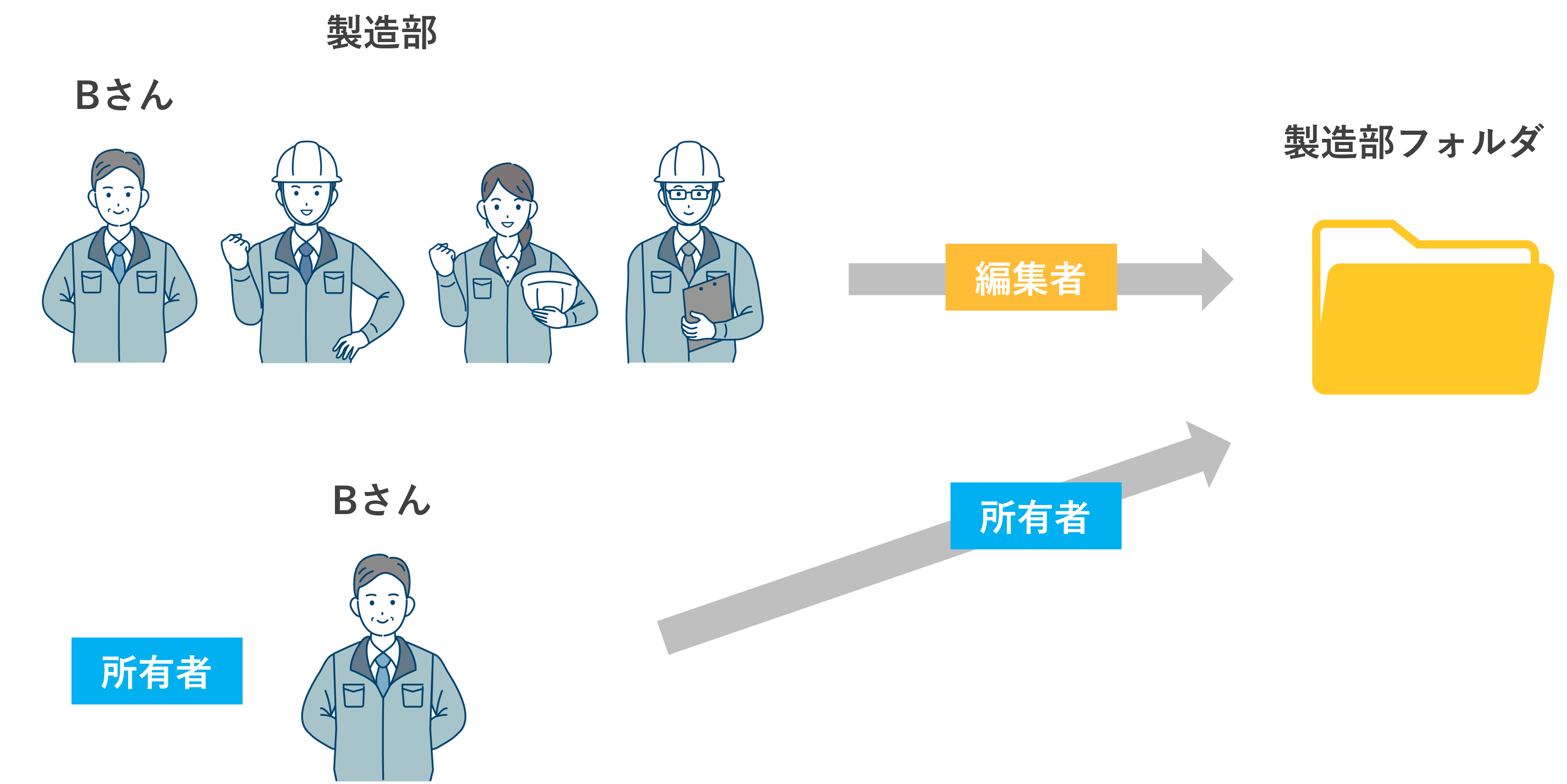 製造部に所属しているBさんは製造部フォルダの[所有者]となります。