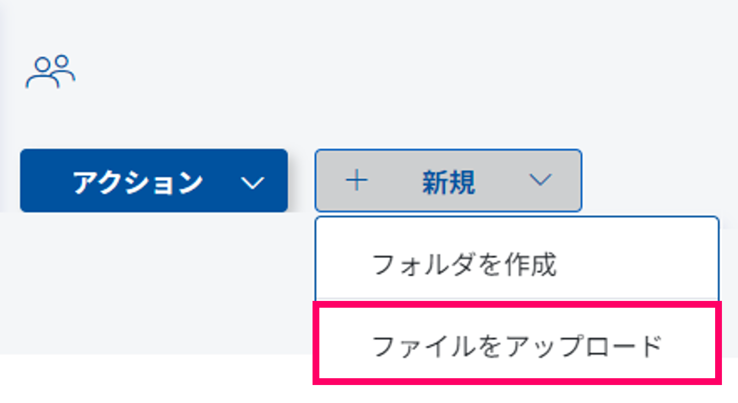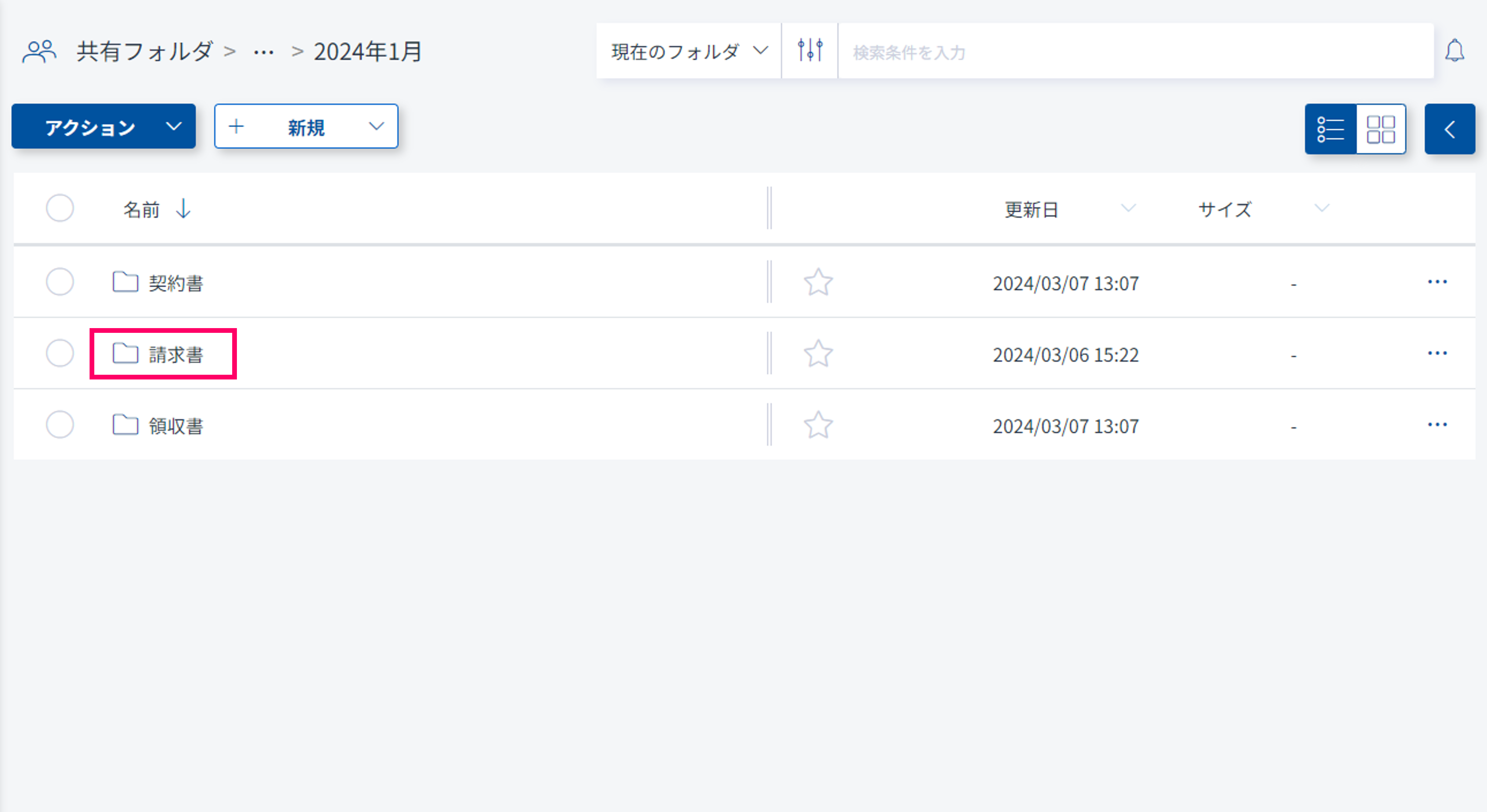 (1) フォルダ名をクリックし、アップロード先のフォルダに移動します。