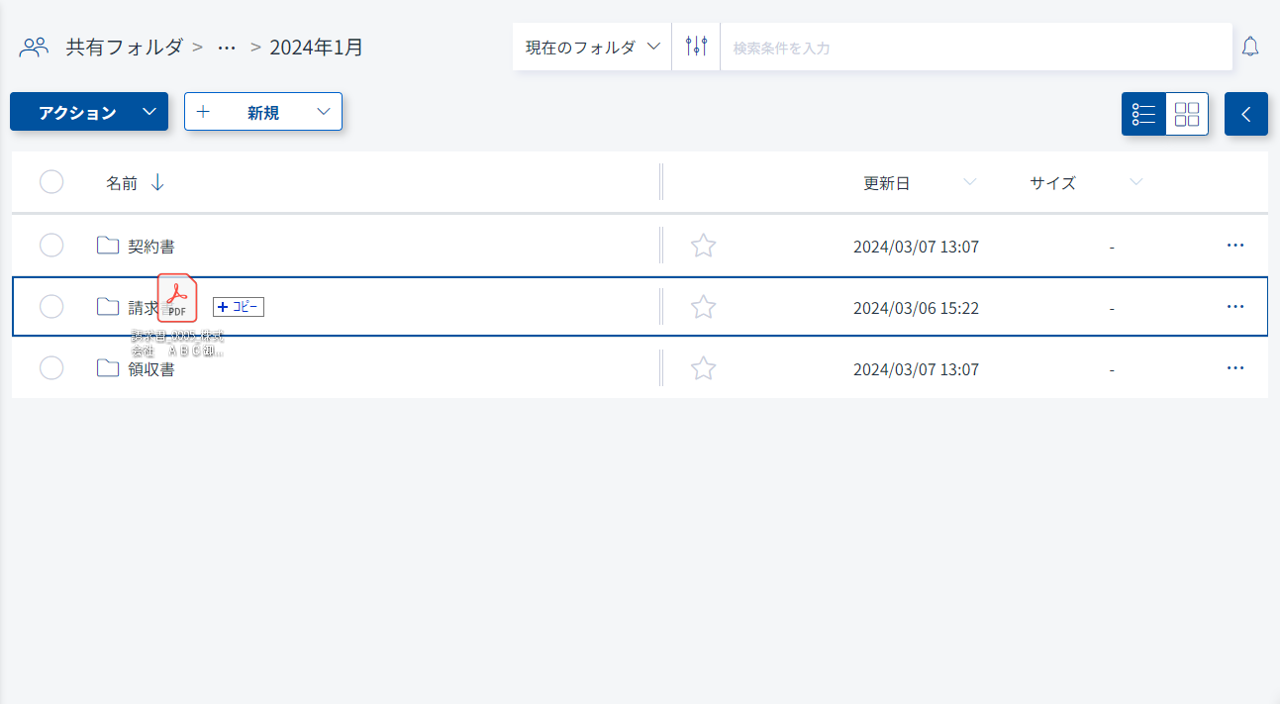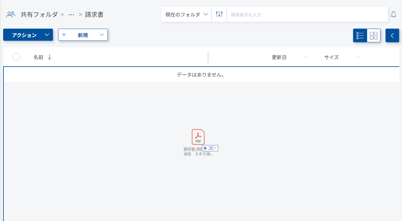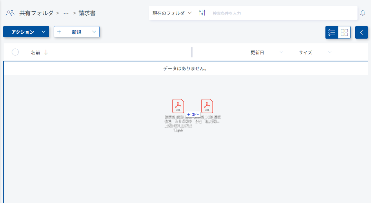 (2) ドラッグ・アンド・ドロップでアップロードをします。保存先は青枠で表示されます。