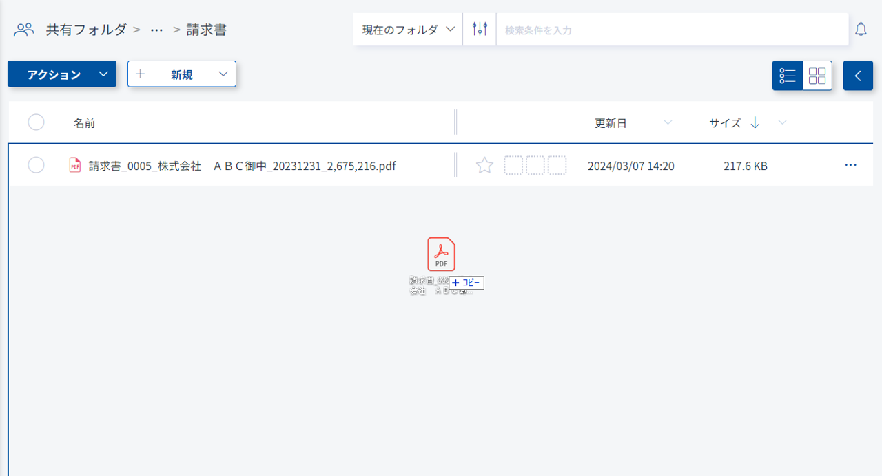 (2) ドラッグ・アンド・ドロップでアップロードをします。保存先は青枠で表示されます。