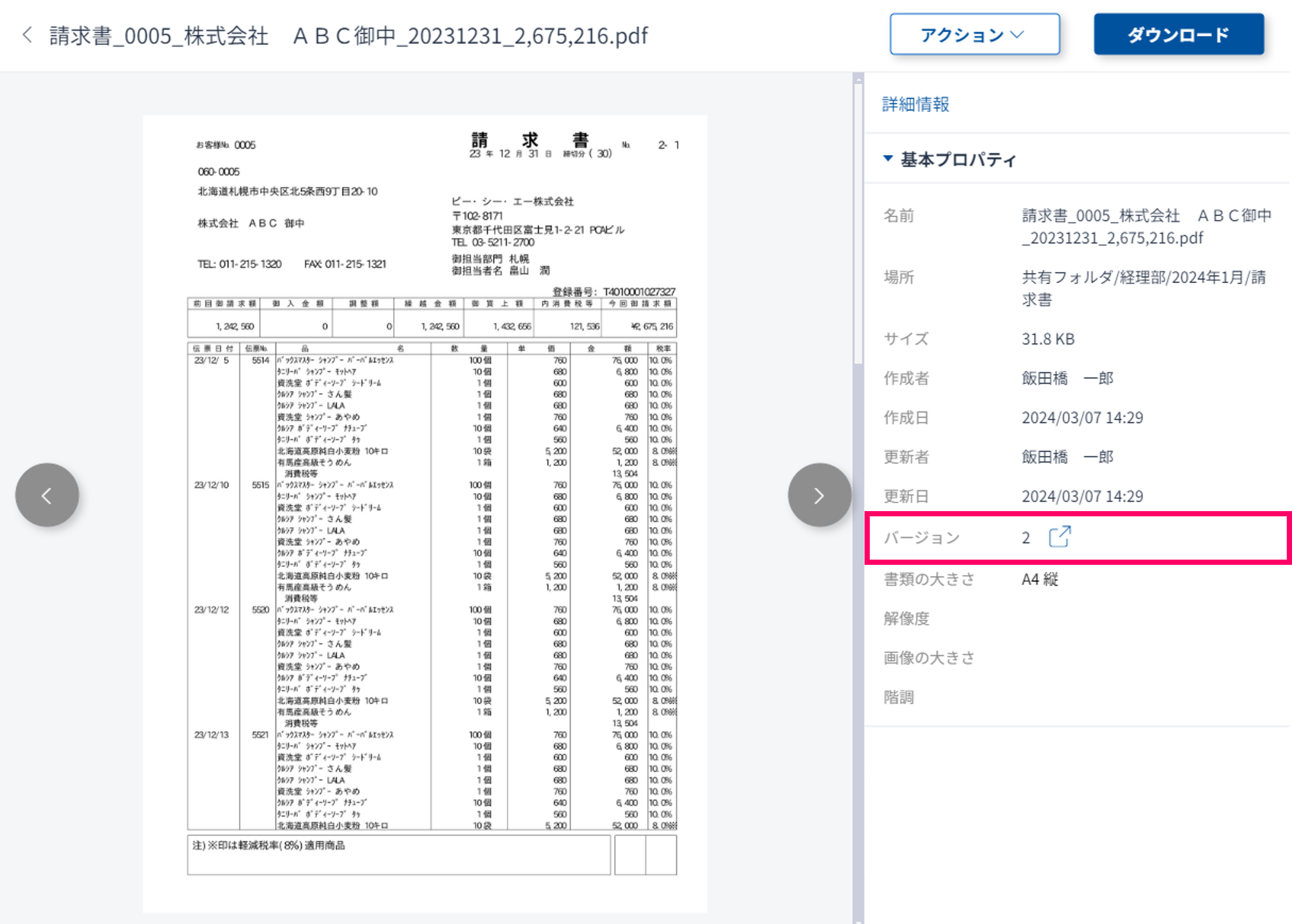 (4) 新しいバージョンのファイルとして保存されます。さらに「上書き」保存を行うと、バージョンが加算されていきます。ファイルをプレビュー表示で確認します。