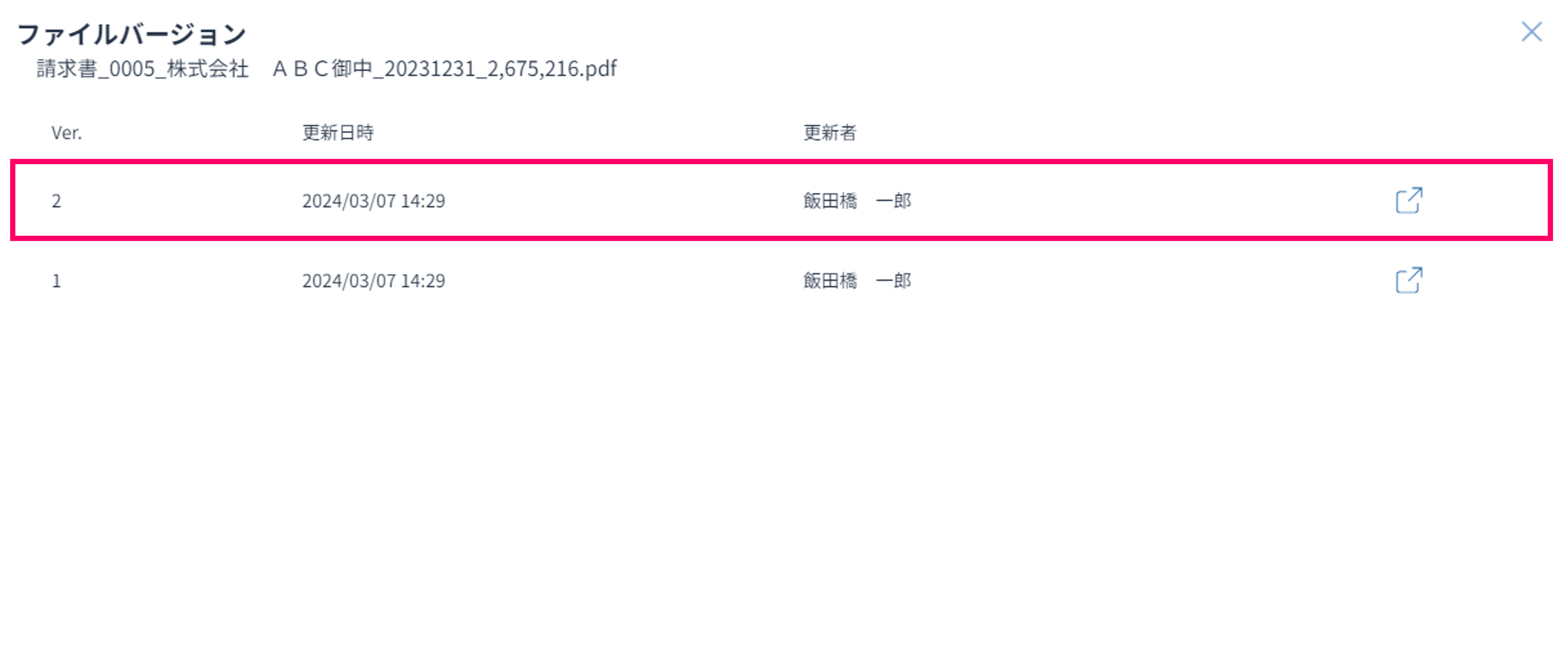 ファイルバージョン毎に更新日時(改訂年月日)が登録されます。