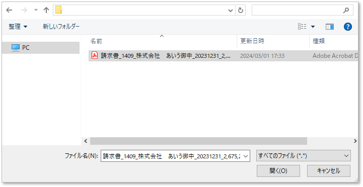 (3) 同一ファイルとしてアップロードするファイルを選択します。
