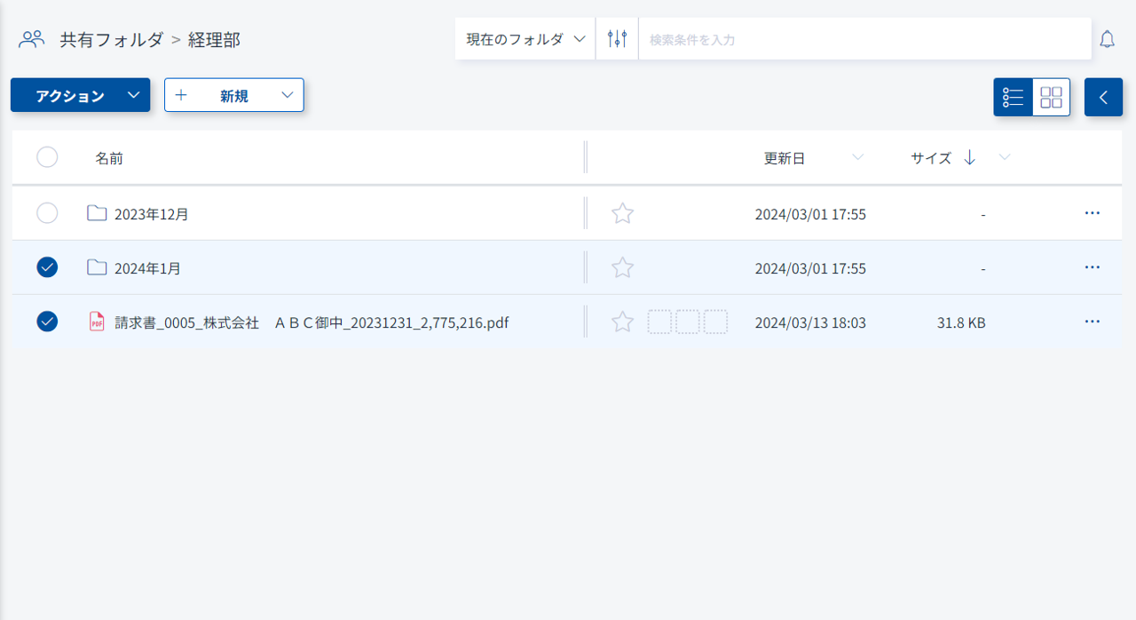 eDOCメニューの「共有フォルダ」、または「個人フォルダ」をクリックします。