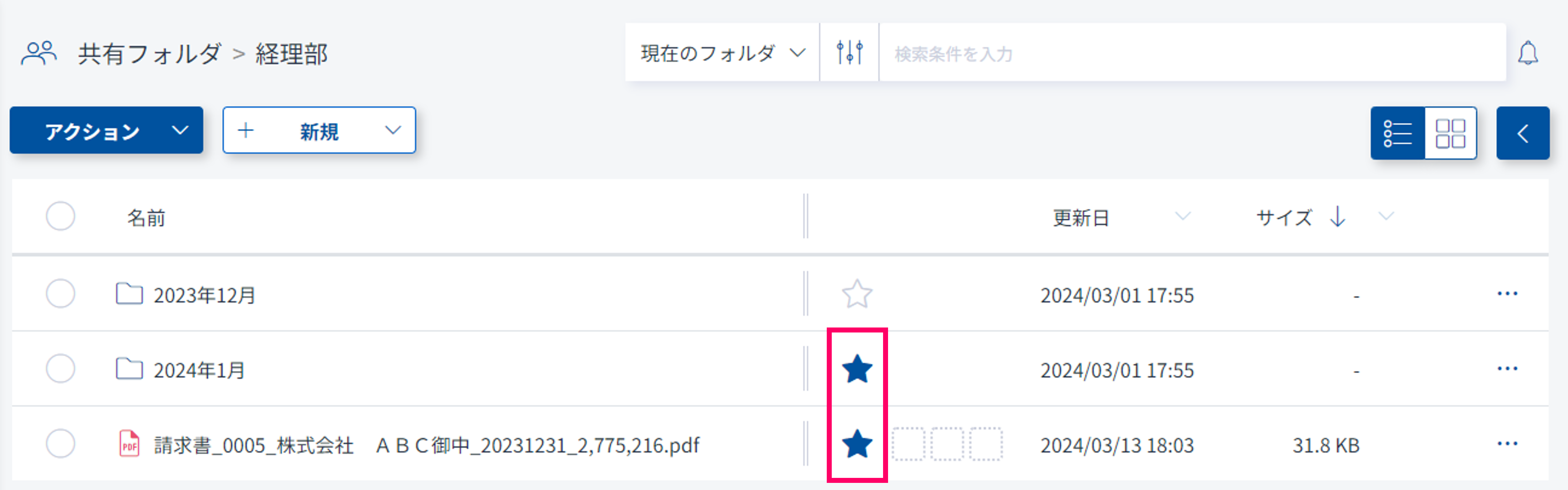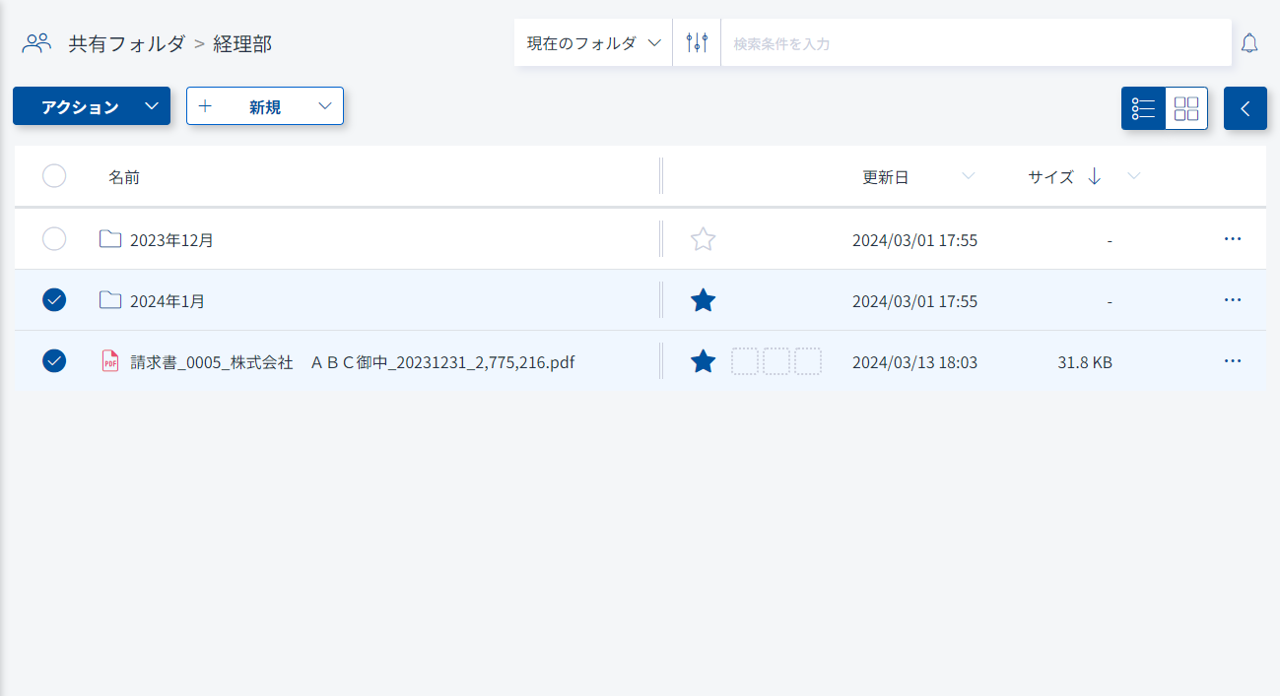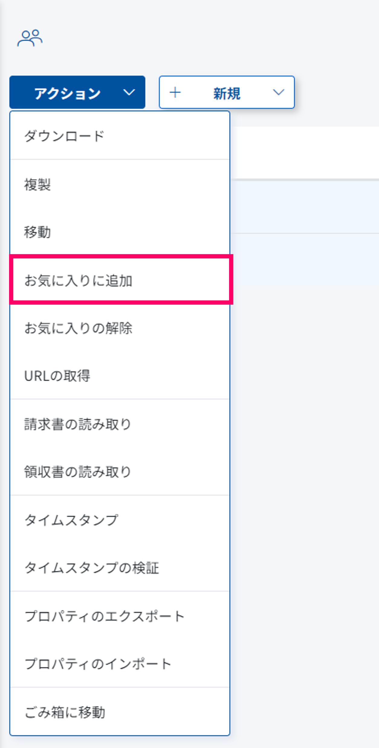 (1) お気に入りに追加したいファイル・フォルダをチェックします。