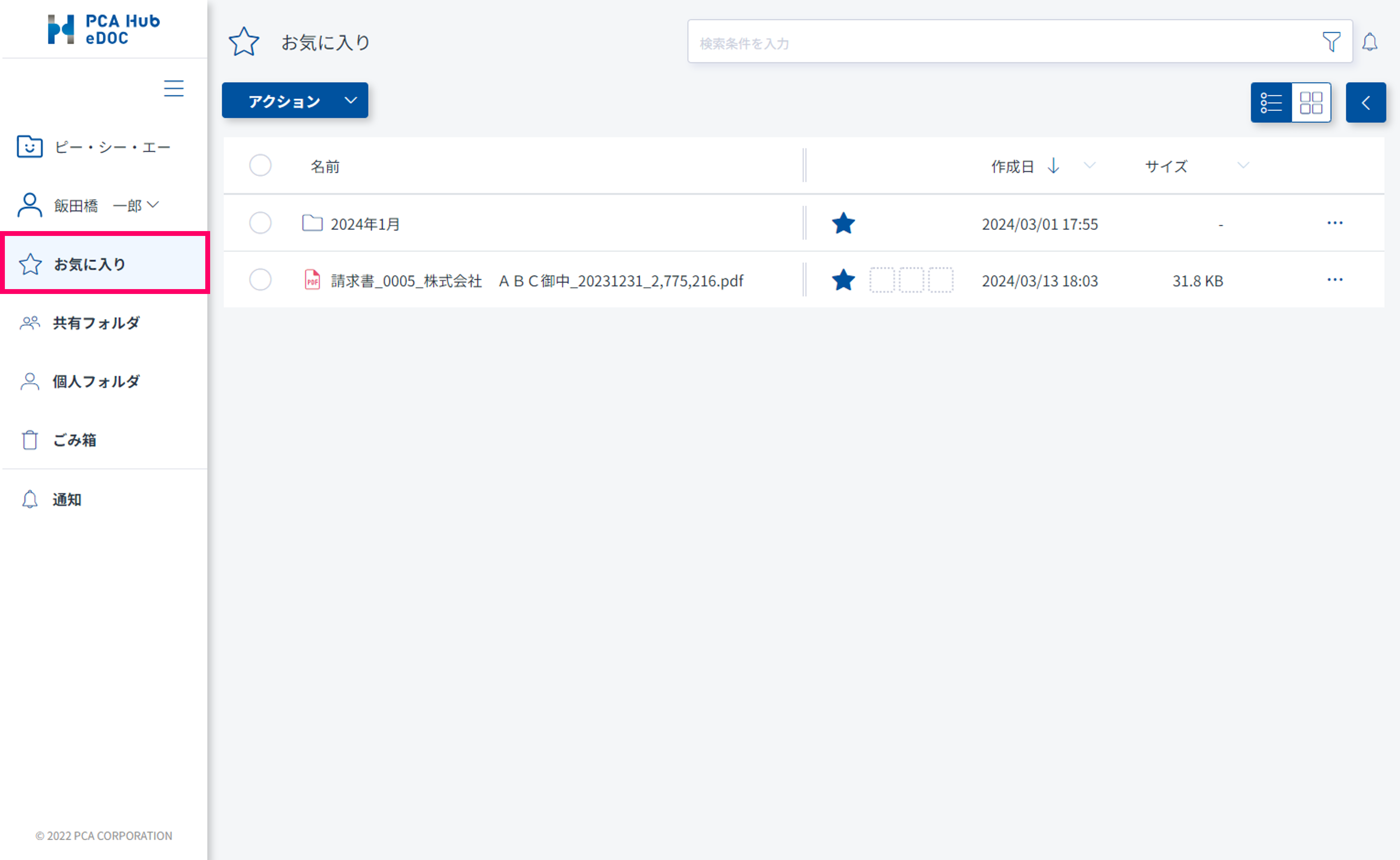 (3) eDOCメニューの「お気に入り」をクリックするとお気に入りを一覧で確認できます。