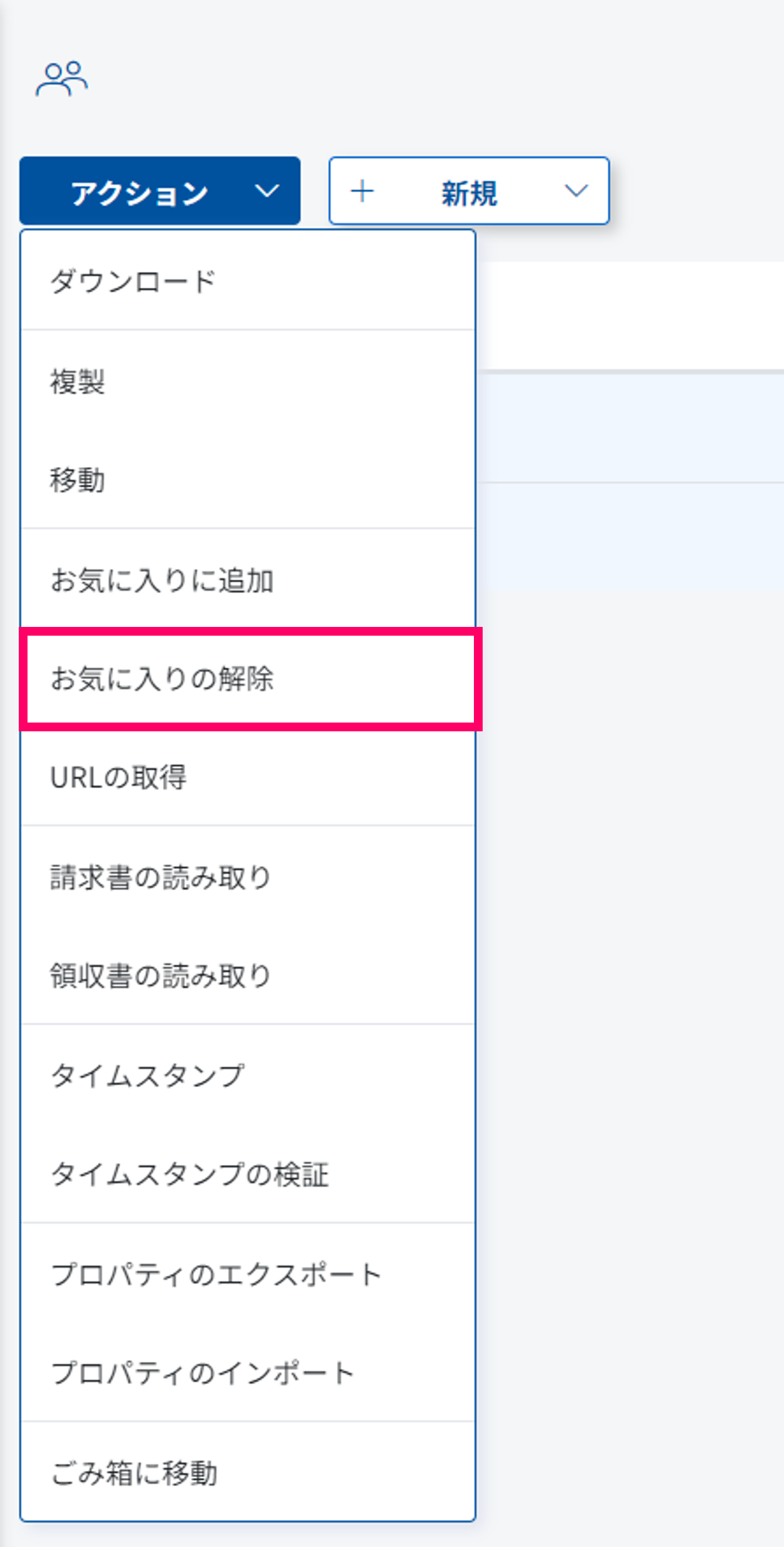 (1) お気に入りを解除したいファイル・フォルダをチェックします。