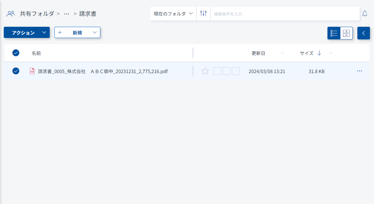 スキャナ保存要件のチェック結果(OK、NG、対象外、OK(ただし書類の大きさの入力が必要)) ※親フォルダの共有フォルダ設定の「スキャナ保存要件のチェック結果を表示」が「表示しない」の場合は「対象外」、個人フォルダも「対象外」になります。 |