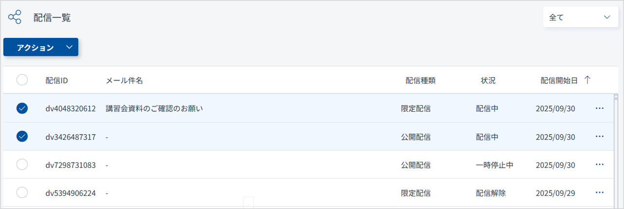 (1) ステータス(状況)を変更する配信履歴をチェックします。