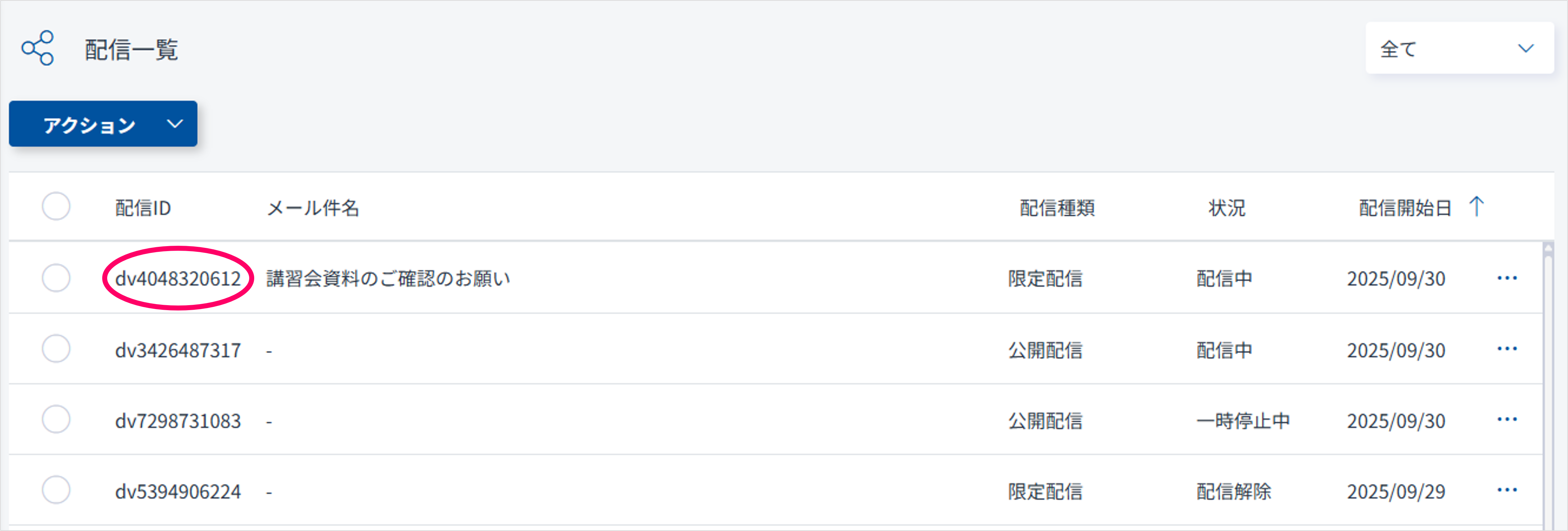 (1) 配信IDをクリックすると配信詳細情報を表示します。