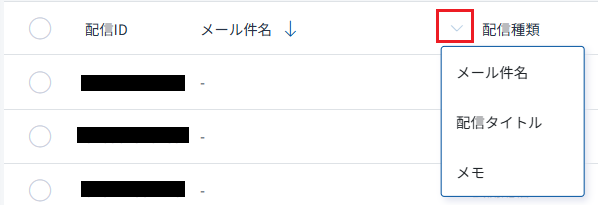 メール件名は配信タイトル、メモに切り替えて表示することができます。