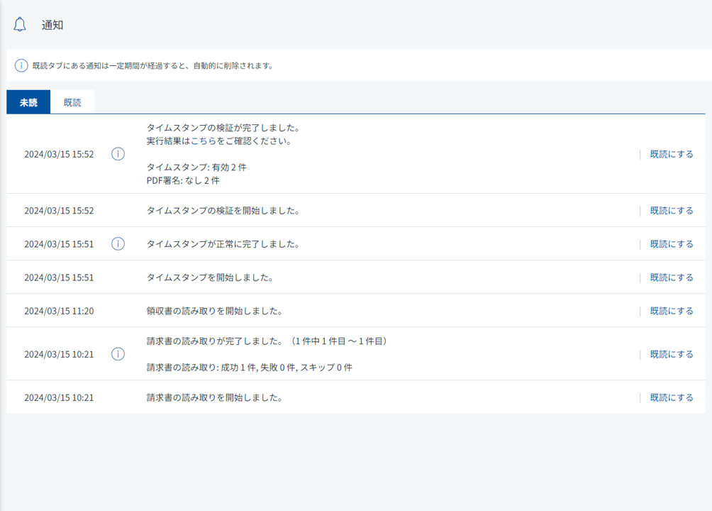 (3) 「通知」にタイムスタンプ実行履歴を表示します。
