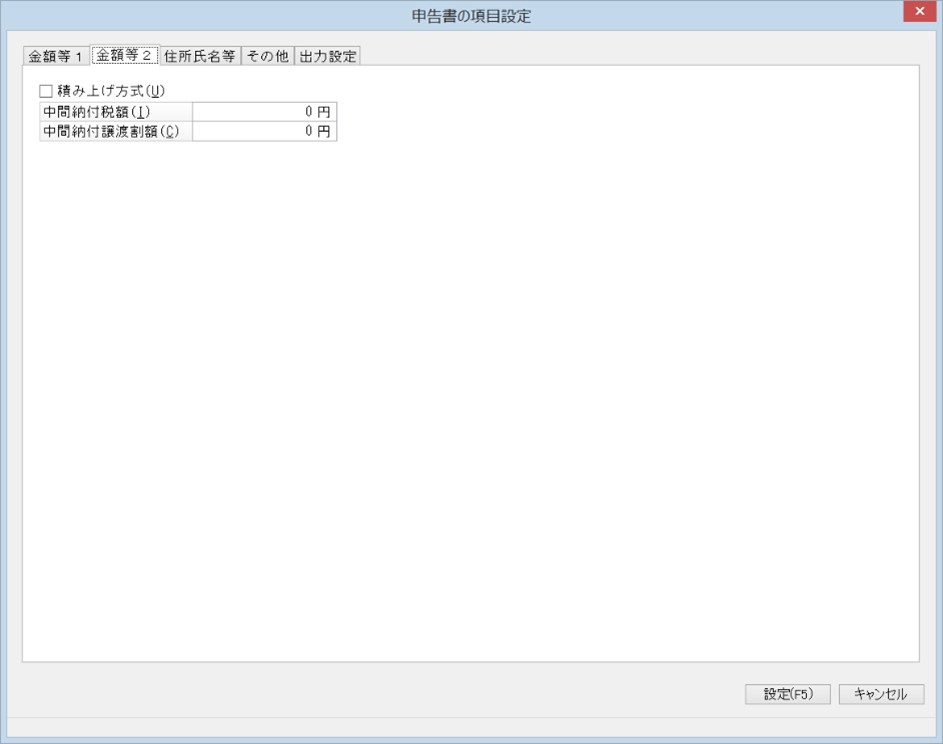 「申告書の項目設定」-「金額等1」タブ
