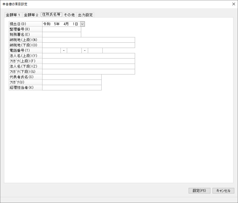 「申告書の項目設定」-「住所氏名等」タブ
