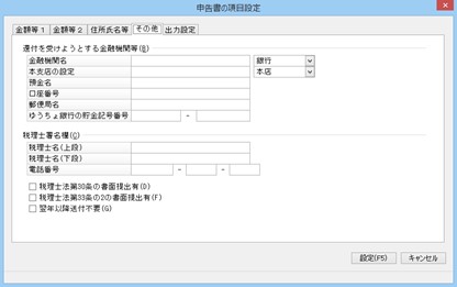 「申告書の項目設定」-「その他」タブ