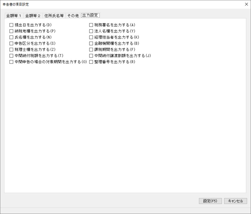 「申告書の項目設定」-「出力設定」タブ
