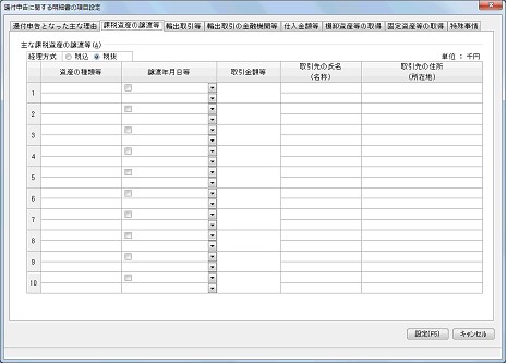「還付申告に関する明細書の項目設定」-「課税資産の譲渡等」タブ