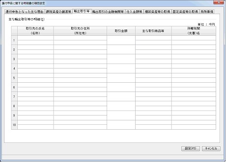 「還付申告に関する明細書の項目設定」-「輸出取引等」タブ