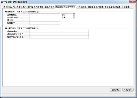 「還付申告に関する明細書の項目設定」-「輸出取引の金融機関等」タブ