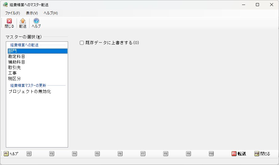 (1) 「勘定科目」、「補助科目」 の順にマスター転送を実行します。
