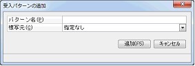 (2) 新規登録の場合は、「受入パターンの追加」画面が表示されますので、パターン名を全角20(半角40)文字以内で入力して、[追加]ボタンをクリックします。登録済みの受入パターンの内容を複写して設定を行う場合は、複写元で受入パターンを選択します。