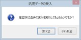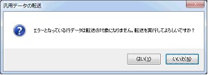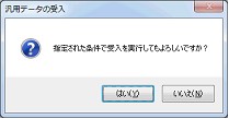 (8) 汎用データに受入可能なデータとエラーとなったデータが混在する場合は、確認画面が表示されます。受入可能なデータのみ受入を実行する場合は、[はい]ボタンをクリックします。受入を中止する場合は、[いいえ]ボタンをクリックします。
