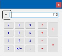 左上の四角に入力した演算子(+、-、*、/)を表示します。