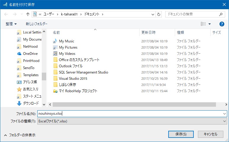 フォルダを選択し、「ファイル名」欄にファイル名を入力します。