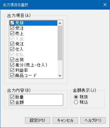 [出力項目]ボタンをクリックすることで、表示する項目を選択できます。