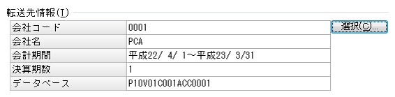 「転送先情報」に『PCA会計』のデータ領域情報が表示されます。