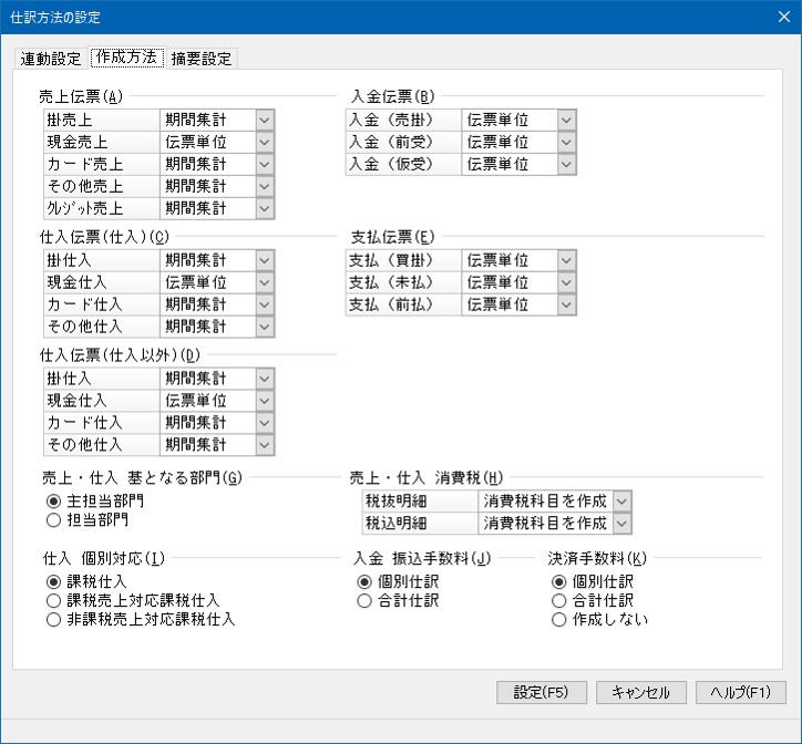 仕訳データの作成方法を設定します。