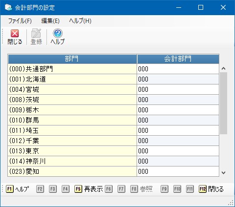 [部門]ボタンをクリックすると、次の画面が表示されます。