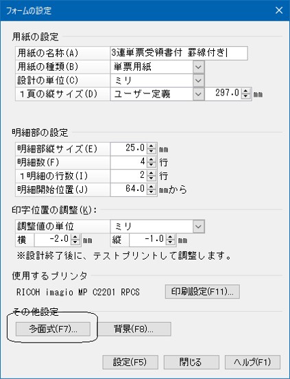 (1) 「フォームの設定」画面で[多面式]ボタンをクリックします。