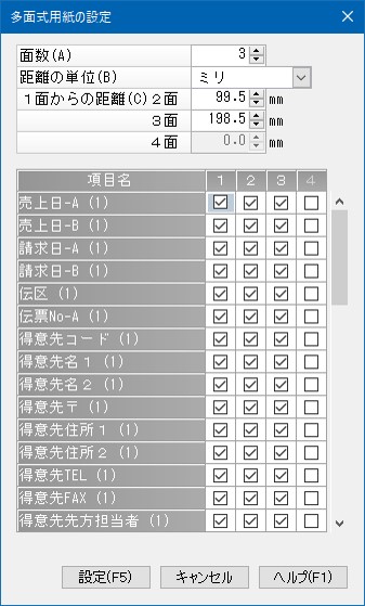 「明細部の設定」は、1面目だけを基にして指定します。