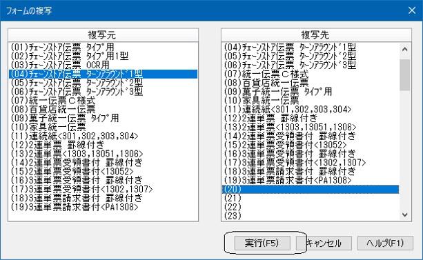 用紙の名称もそのまま複写しますので、[フォーム(用紙)の設定]画面で名称を変更してください。