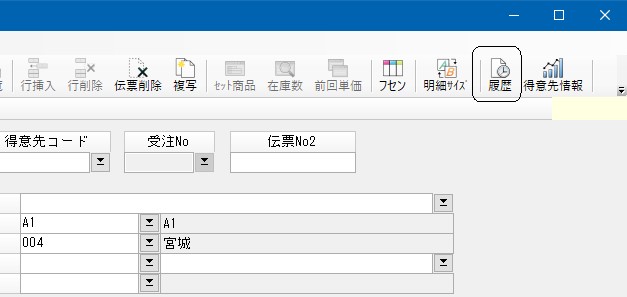 行をクリックすれば、そのマスター・伝票の履歴が画面下側に表示されます。