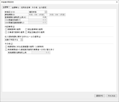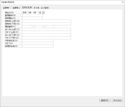 「申告書の項目設定」-「金額等1」タブ