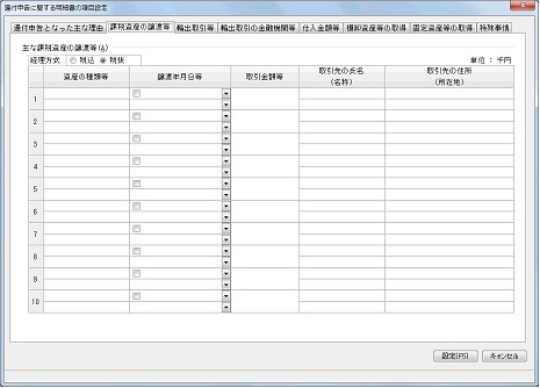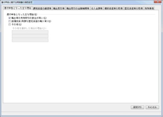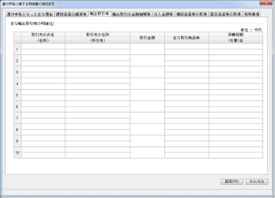 「還付申告に関する明細書の項目設定」-「輸出取引等」タブ