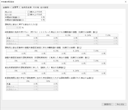 「申告書の項目設定」-「金額等2(一般課税)」タブ