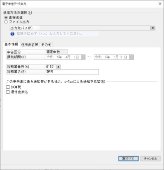 「電子申告データ出力」-「基本情報」タブ