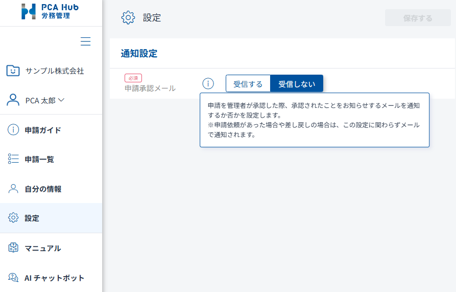 PCA Hub 労務管理で申請を利用するための準備を行います。