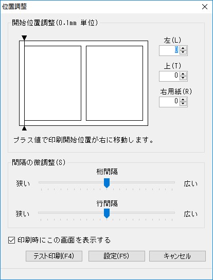テスト印刷をして印字位置の調整をしてください。