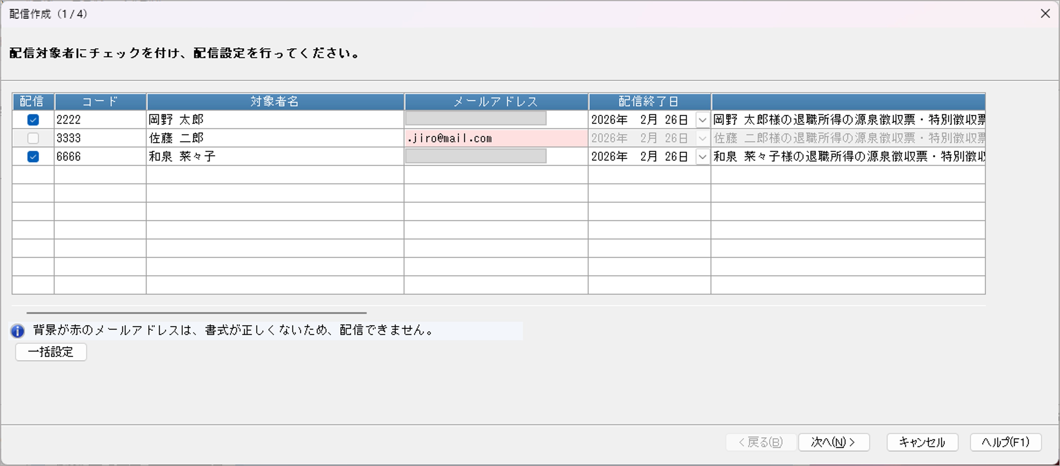 (3)  [次へ]ボタンをクリックすると、配信対象者それぞれの配信内容が表示されます。
