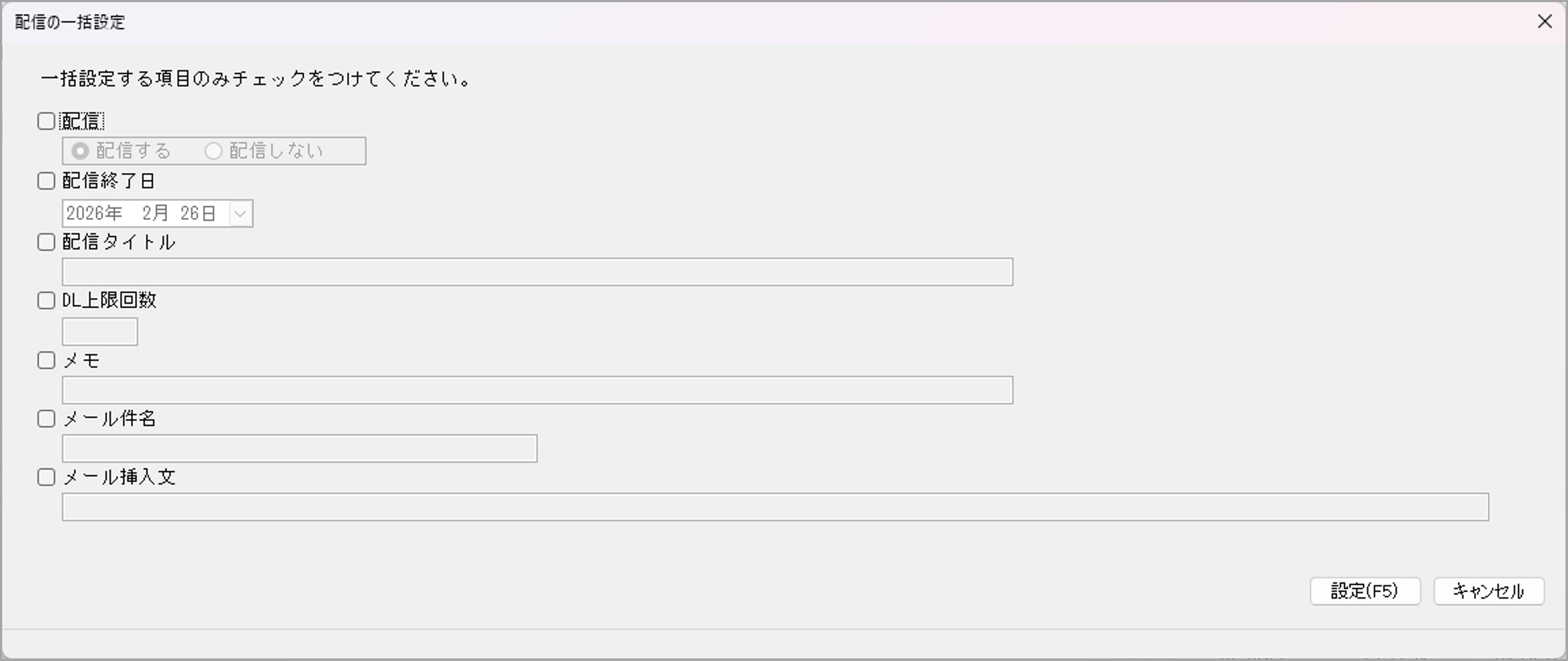[一括設定]ボタンをクリックすると、「配信の一括設定」画面が表示されます。