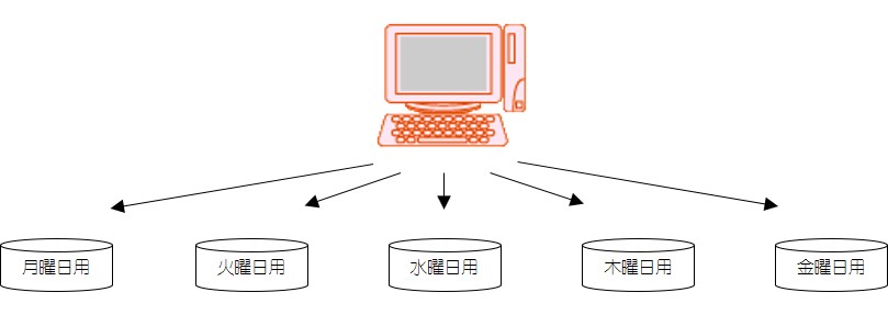 曜日ごとのバックアップデータ(月曜日用、火曜日用など)を用意し、毎日バックアップを実行する