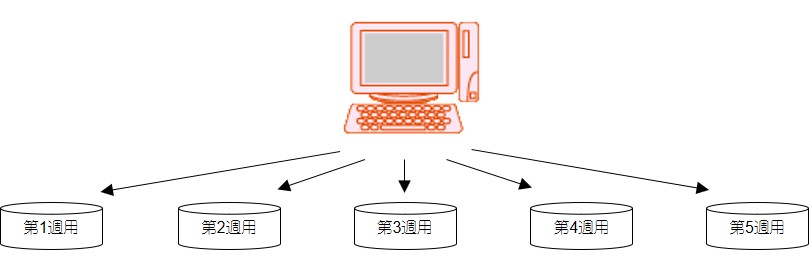 週ごとのバックアップデータ(第1週用、第2週用など)を用意し、毎週バックアップを実行する